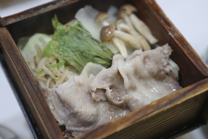 清蒸的豬五花吃起來不會油膩,搭配野菇跟清菜,爽口美味。 |