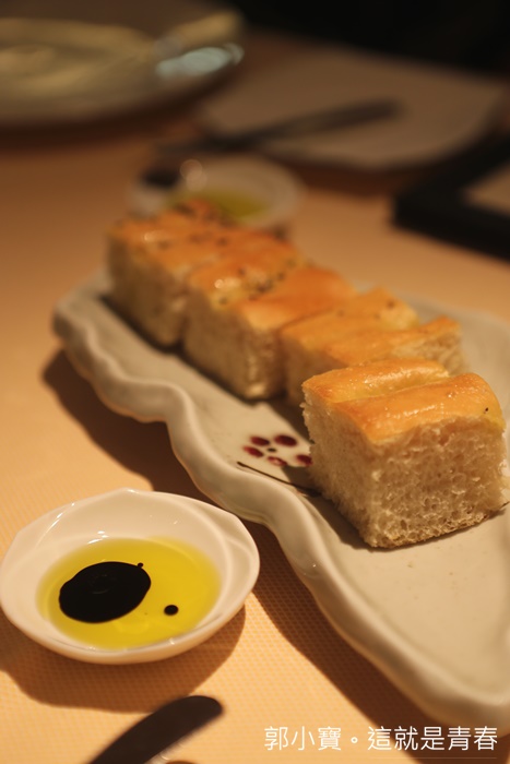 麵包是餐廳內自己做的,口感很不錯,熱熱的入口在沾上餐廳調出來的紅酒醋跟橄欖油咀嚼起來的味道非常的棒。 |