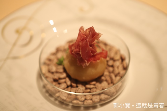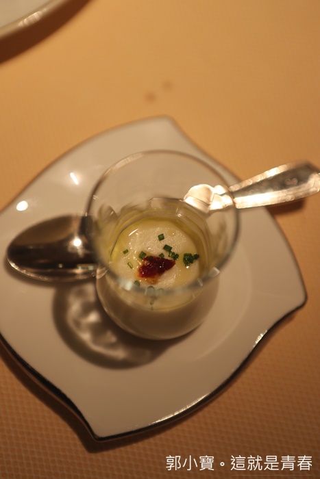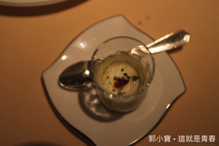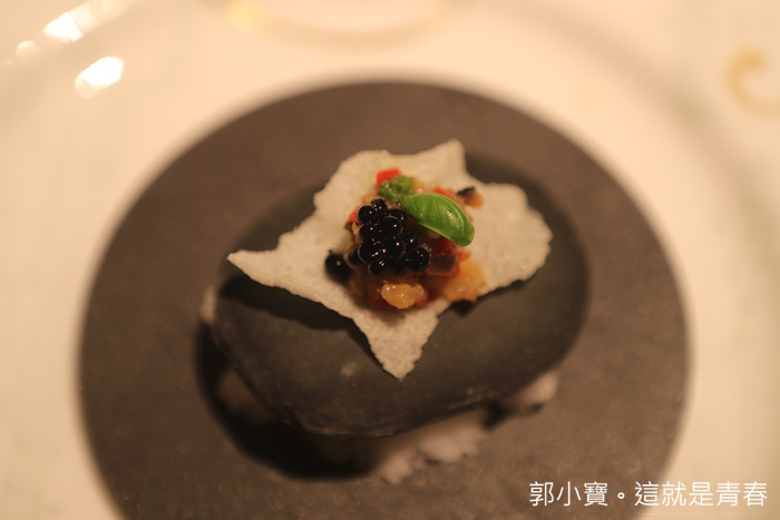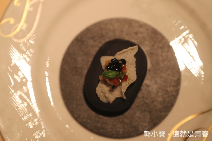 非常精緻的一道前菜,魚子醬的美味真的無法形容,搭配莎莎跟入口那千變萬化的滋味非常迷人,那一口真的是讓人多一分覺得太膩少一分覺得不夠,剛剛好到達意猶未盡的感覺。 |