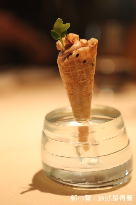 鴨肝甜筒看起來就非常討喜,滿滿的鴨肝一口咬下那濃郁的香氣馬上爆口而出,那滑膩卻又黏稠的口感搭配脆度十足的餅杯,一整個是大滿足,鴨肝給的分量非常十足。 |
