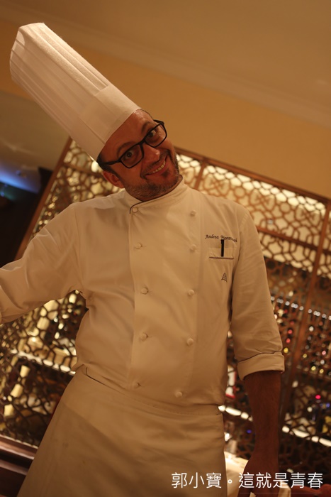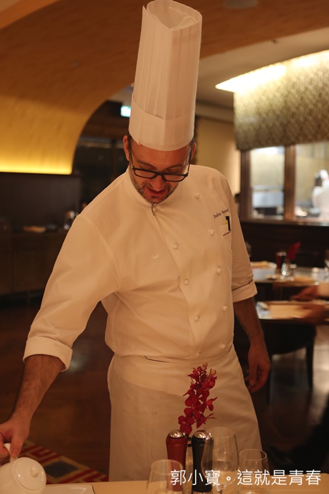 超可愛的主廚,不知道為什麼我都覺得外國廚師又高又帥手藝又都很好,就算有肚子還是覺得很帥,重點是我覺得他真的很可愛,除了有精湛的好手藝以外,又可以親切的跟客人互動,餐廳每一道菜上來的時候都會跟客人解說一下,只是我聽不懂英文,都是朋友翻譯給我聽得XD |