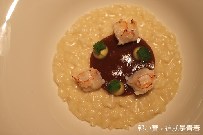 非常道地的一道料理,老實說我真的不懂燉飯,因為很多人都說台灣做的義式燉飯都很不道地,燉飯上的明蝦還滿彈牙可口的,中間的醬汁搭配點綴的檸檬醬汁。 |