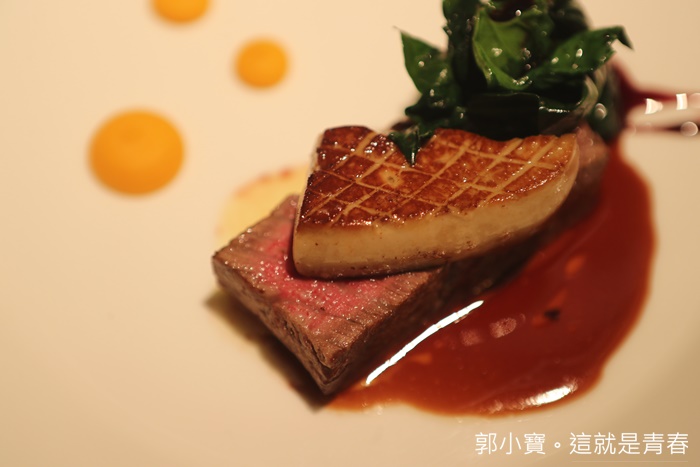 看看這鴨肝跟牛肉,這兩個組合真的是天衣無縫的組合,主廚特製的醬汁也很不賴,但是我個人比較喜歡吃原味,這樣的組合真的很讚,一口鴨肝一口牛肉也很美味,或是各切一小塊入口也很棒,這是我最愛的組合搭配。 |