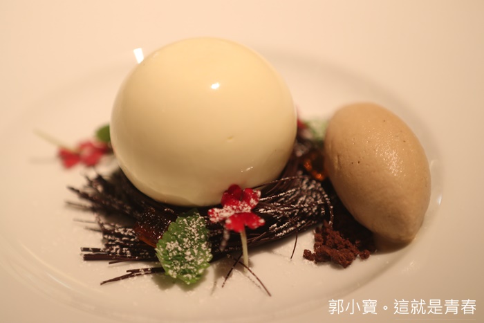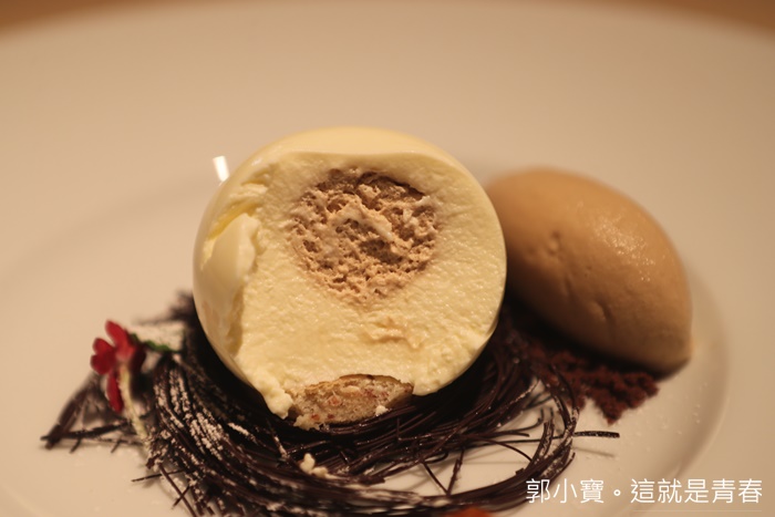 圓形奶凍也太厲害了,奶凍的滋味真的相當棒,裡面還有杏仁甜酒果凍,搭配起來甜而不膩,奶味十足層次也非常豐富,瞬間就被我嗑光了,旁邊的咖啡冰淇淋也一致獲得好評! |