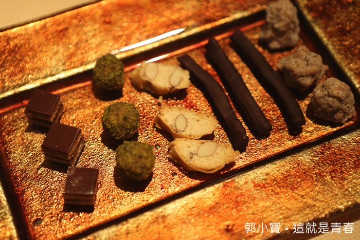 甜點二部曲,原來奶凍結束後還有茶點可以吃,都是很精緻的小點心,跟飯後飲料一起上來,每一種也都很可口。 |
