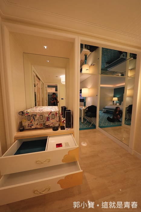 入門後左手邊就是行李櫃跟衣物櫃,這配置相當不錯,緊鄰廁所且格局方正,留下寬廣的空間可以翻找行李。 |