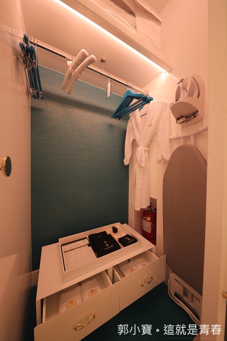 衣物櫃的也還滿大的,裡面的用品也應有盡有,衣架也給的滿多的,其中還有特別吊掛西裝跟佯裝用的衣架,準備得非常齊全。