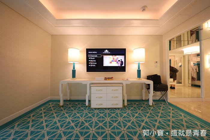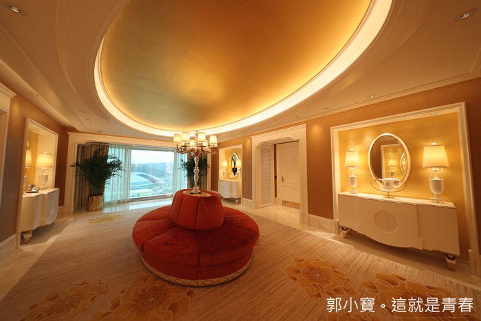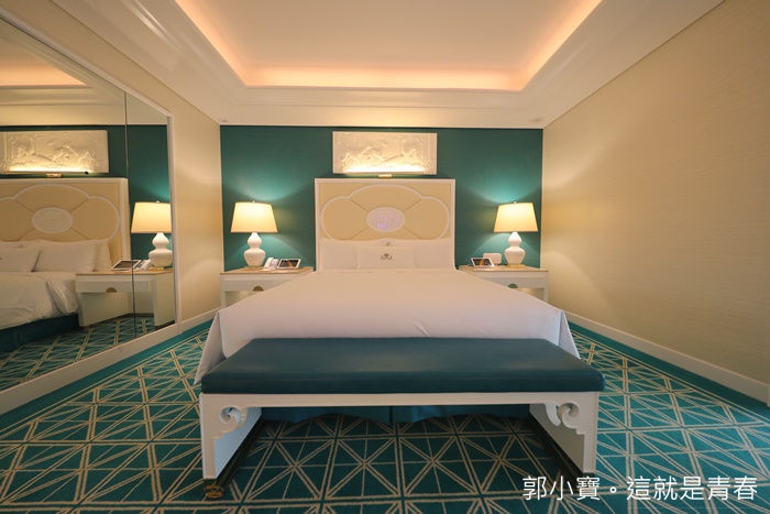 進入房間的第一眼包準每個女生都會愛上它,這典雅華麗的公主夢幻風真的是太美了,永利皇宮的房間配色有好幾種,焦糖色跟湖水綠是最受歡迎的,房間空間的配置也是恰到好處,基本上看過的都會喜歡,這房型是一房一廳面水舞池的房間,非常棒呢!! |
