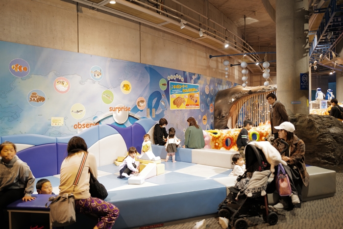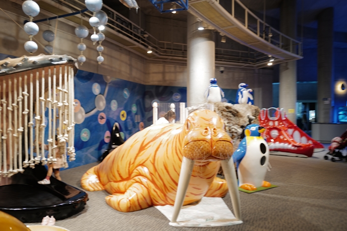 令人驚訝的裡面還有小朋友的遊戲區,各式各樣海洋生物造型的溜滑梯、遊戲墊真的也太受小朋友的喜愛,擠滿了超多小朋友。 |
