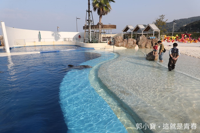 令人一個一個驚訝不段的就是這邊還有一個人造沙灘跟遊戲區,這邊也是這一年來很受歡迎的海豚互動區,除了可以脫下鞋子踩踩沙灘以外,這邊也有很多小朋友來玩挖沙坑遊戲。 |