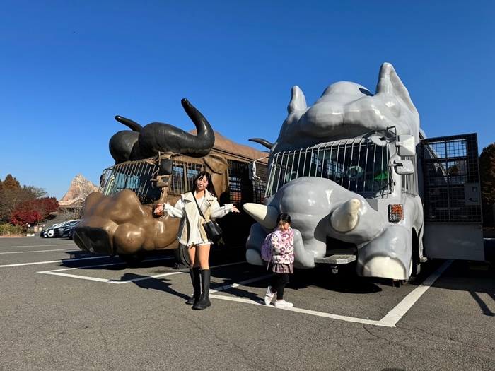 日本野生動物園最有特色的就是這些動物造型的觀光遊覽車,多種造型任君選擇,其實也不到任君選擇啦,哪一班到站你就坐哪一班就是了XDDD