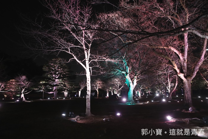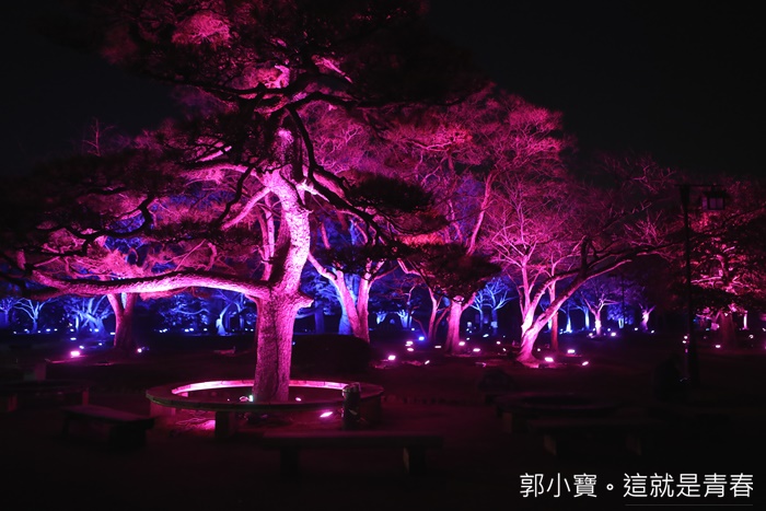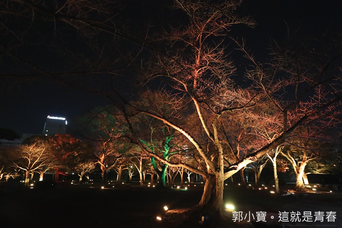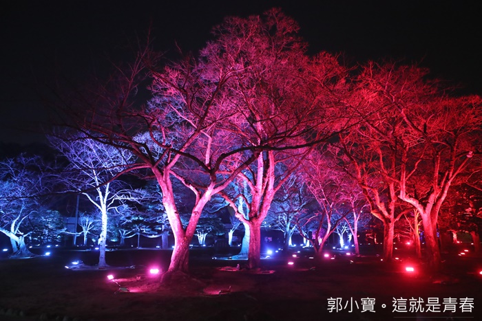 德島市民們的生活中心城山公園也是這次LED數碼藝術祭的重點,將這一大片的公園在晚上給予了另一種生命,城山公園占地遼闊,隨著反射燈感應附近有沒有人行走或是駐留來變化樹林的顏色,雖然有幾個顏色讓人覺得頗為陰森,但是因為藝術祭的關係所以人潮還滿多的,所以一點都不會覺得恐怖XD |