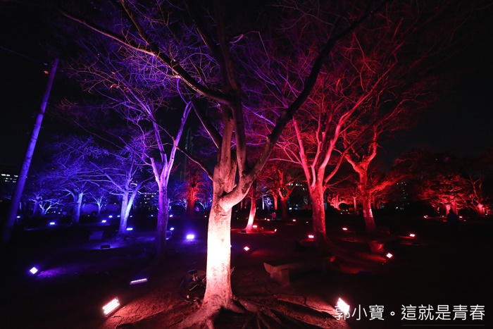 這個展區也是很多情侶約會的地方,坐在這長椅上喝著熱茶,欣賞這一整片樹林的聲光效果談天說地真的非常的愜意。 |