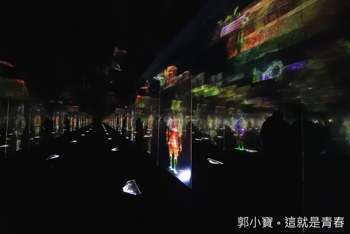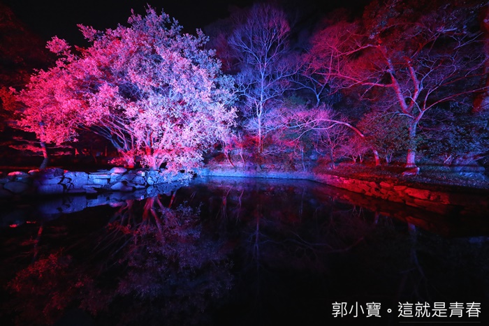 走的深入一點可以發現這邊還有湖泊,加上聲光的表現,水中的倒影相互輝印真的非常美麗,只要有人經過就會變化不一樣的主題聲光,LED數碼藝術祭各個展區的工作人員都非常多,所以一點都不用擔心安全問題,幾乎每個角落都有白色服裝的工作人員提供服務。 |