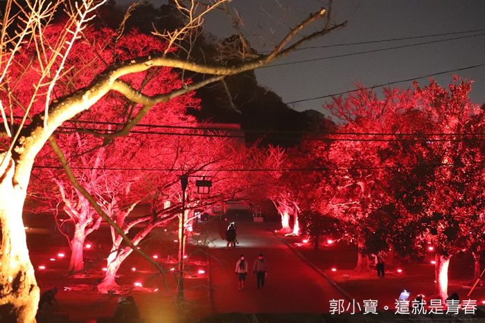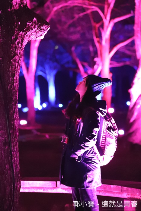 登高一望還真的有種置身在秋天紅葉樹林的感覺,粉紅燈光亮起的時候又變成了櫻花遍遍的錯覺,一整片的燈光交錯真的是美不勝收,好想就坐在這邊靜靜的欣賞這美麗的燈海。 |