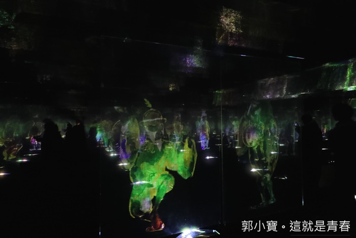 進入這裡似乎進入了另一個世界般,走進了日本的神話鬼怪世界的感覺,真的非常吸引人,每一遍玻璃裡面都有一個主角擺動,加上全玻璃屋的反射讓人感覺似乎有無窮無盡虛無飄渺的空間,搭配日本古老的音樂及口令,真的有種詭異及高深莫測的氛圍,讓人捨不得離開這個充滿奇幻的空間。 |