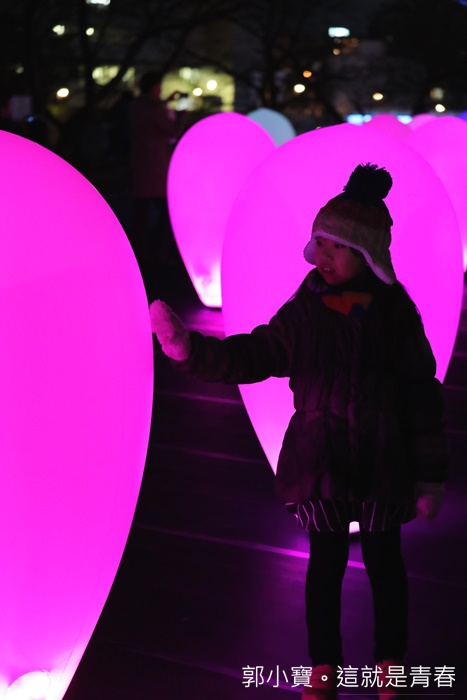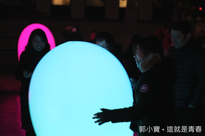 開幕就看到了那麼精彩的LED藝術表演真的還滿愉快的,每個人臉上都充滿了笑容,及實在寒冷的天氣裡依然不減民眾的熱情跟興致,小朋友更是玩到一整個開心無比,蛋型LED的數量非常多且大小不一,經過推擠及晃動遠處看起來很像五光十色的燭火搖曳著,真的一整個美不勝收。 |