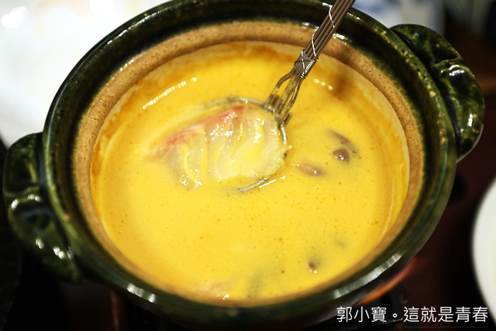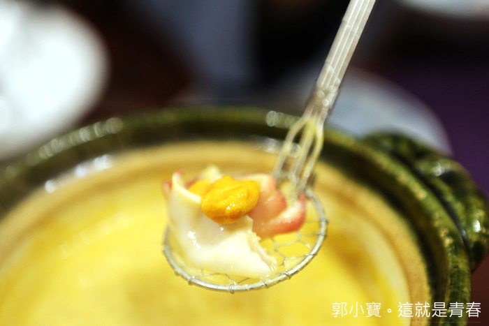這次來到天金本店就讓我期待的就是這一鍋黃金湯頭海膽涮涮鍋了,送上來的時候其實砂鍋小小的一鍋,跟我想像中的一班尺寸涮涮鍋大小有落差,後來挺能釋懷的,海膽這食材煮那麼大鍋老闆可能就跑路了XD |