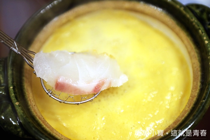 瞬間先將生魚片放下去涮一下,抱歉,我當天太開心忘記問服務生是什麼魚,我個人涮到半熟就起鍋了,可以依造每個人喜歡的熟度,送上來的海鮮食材都是生食等級。 |