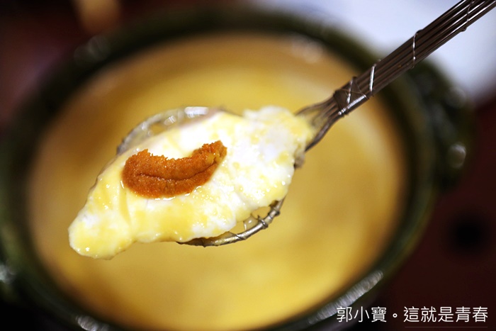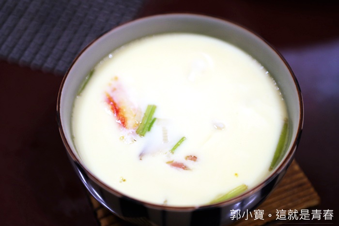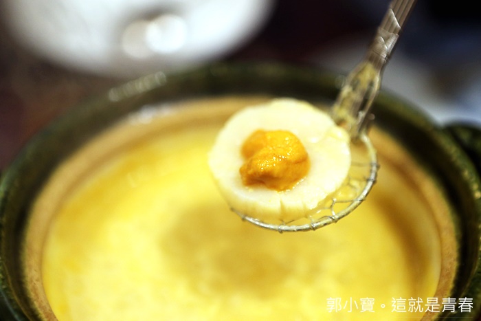 店內的北海道茶碗蒸,內餡一整個大爆炸,而且連茶碗蒸裡面也有海膽、雞肉塊、蝦子等等超豐富的食材,茶碗蒸的蛋幾乎沒有氣孔,就像布丁一樣的光華,我很佩服日本人茶碗蒸的技術,但是茶碗蒸我個人覺得蛋味沒有很重。 |