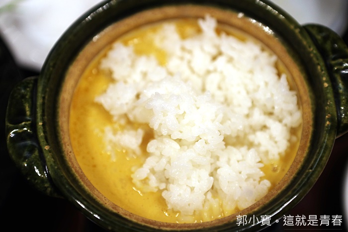 先將一碗白飯放進砂鍋內,記得點一碗白飯就好,一碗白飯下去就幾乎滿了,再將白飯跟海膽湯頭拌勻,齊食到這邊我的口水都不知道留到哪裡了,太誘人了啊!!!