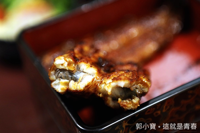 一打開飯盒的蓋子香氣就撲鼻而來,浦燒的顏色非常漂亮,感覺醬味吃得非常透,油光也很多,一看就知道是好吃的浦燒鰻了,份量也給得非常足,老實說這價味的鰻魚重算是滿便宜的,給到一整尾的份量很大方。 |