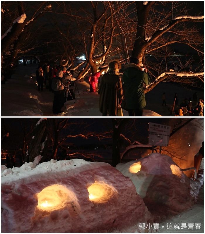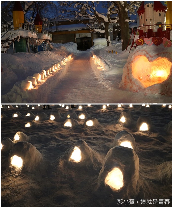 另一個小雪屋熱門景點就是市內橫手南小學的校園裡,出現了無數亮燈的小“雪屋”,也顯得格外浪漫,整個橫手市內大大小小的雪屋,凝聚了無數大大小小孩子的笑聲,也有市民挖出雪屋大賺觀光財,進到雪屋吃的臨時的小吃喝杯熱茶暖暖身子。