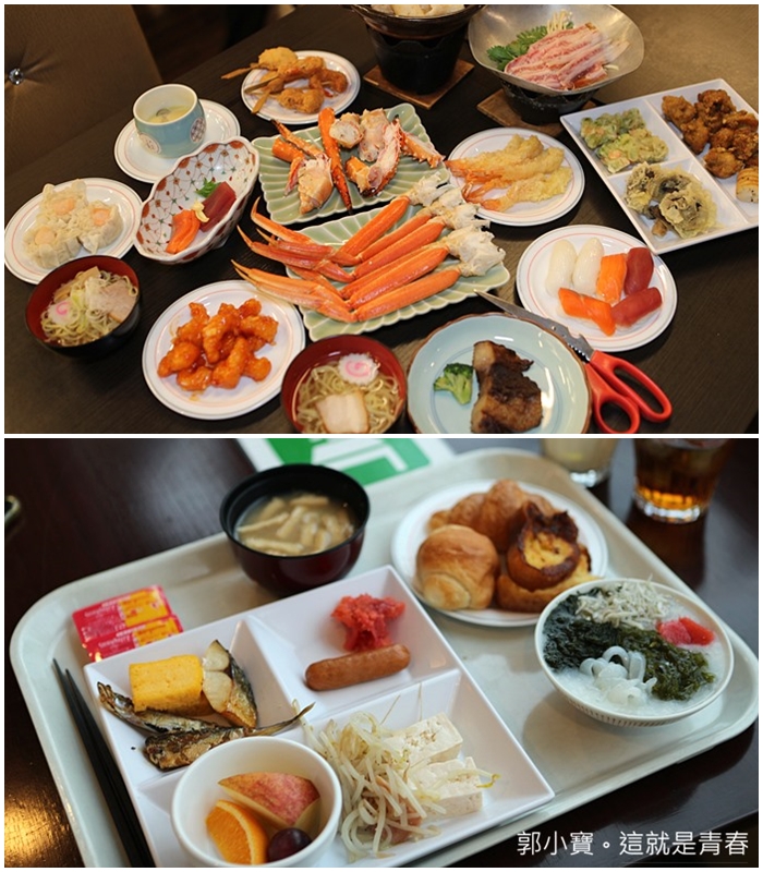 它們家的晚餐是自助式的,餐點準備的非常豐盛,最主要還有提供松葉蟹跟帝王蟹腳可以無限享用,壽司生魚片樣樣都不少,真的讓人吃的很過癮,早餐的部分也是中西式跟日式通通都有,光是餐飲的部分就加分很多了。