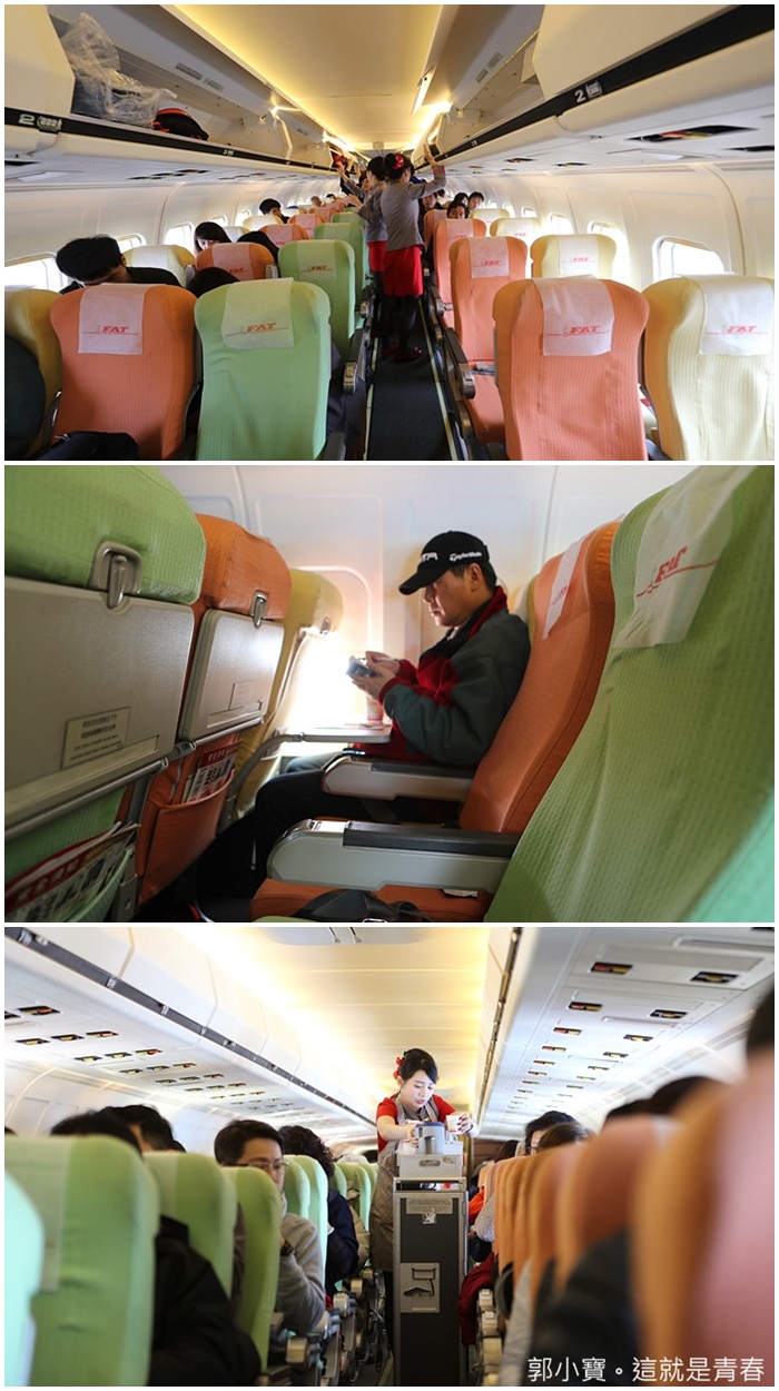遠東航空雖然機型較老,但是不管是氣氛的營造上還是椅套顏色都想要凸顯繽紛的色彩,且其實它們的座位空間都還算滿大的,座位也算是舒適,空姐的服務也很好,那種非自內心的笑容及服務,可能因為遠東航空不如其他航空公司財大氣粗,所以在這些小細節上更顯得用心。