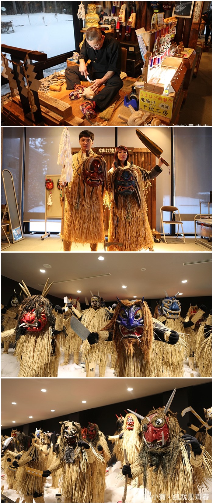 除了有現場表演鬼神的文化習俗以外,旁邊的男鹿館更是有大量的歷史文物,可以讓遊客體驗裝扮成鬼神打卡拍照留念以外,還有上百尊各地鬼神的面具,現場也有老師傅製作鬼神面具,很值得造訪的鬼神館。