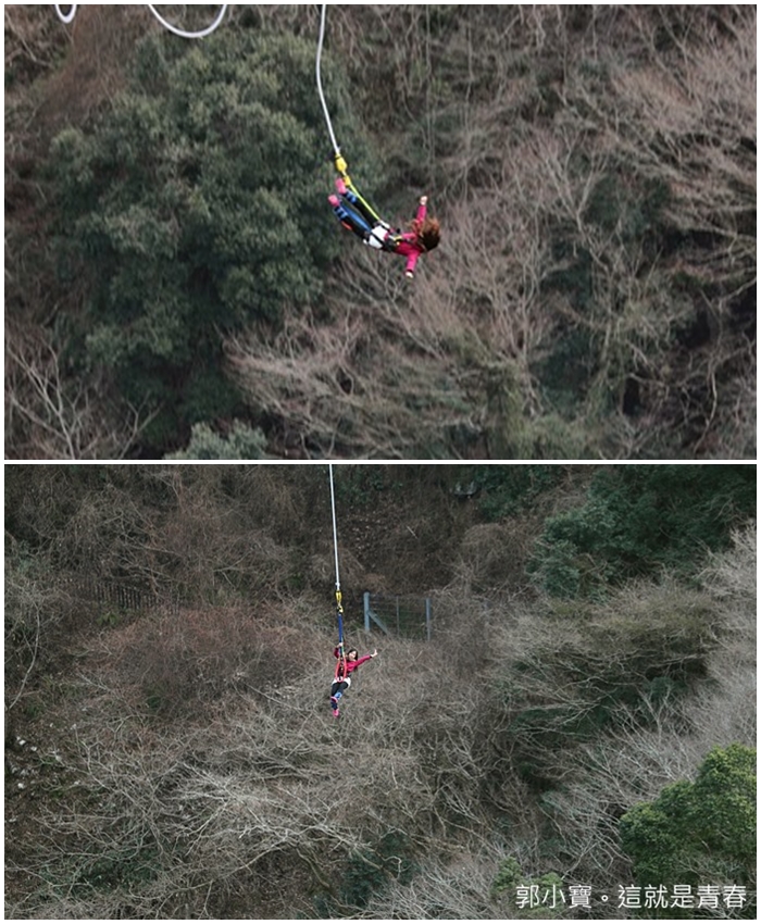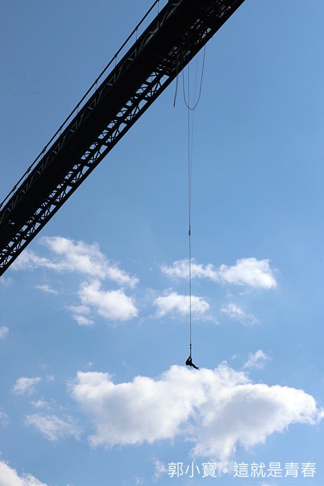 等了一下終於看到芃芃站了出來準備要跳了,連教練都誇獎她沒有一絲猶豫就直接跳下去了,比很多男生都勇敢許多,我個人也深感佩服,好幾次去好多國家都有高空彈跳的機會,但是我一次都不敢跳。 |