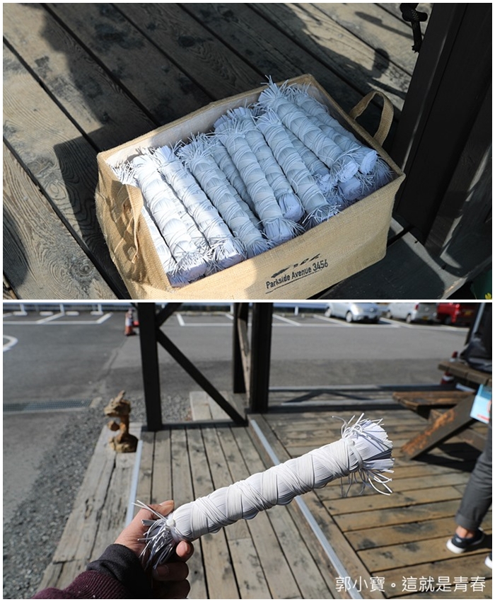 小屋前面的彈跳繩可以讓遊客遊戲拿走或是帶回家當紀念品,這些高空彈跳繩都是跳過固定的次數後就會淘汰的,處理成一段一段的讓遊客帶回家當紀念品。 |
