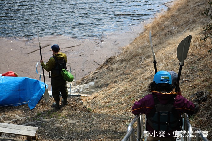 前往搭船處的地方還有一個陡坡駕個鐵梯,因為斜度有點斜,所以下去的時候真的要小心一點,雖然教練會一前一後的夾著妳一起走並且保護妳,但是建議還是要握手扶手下梯。 |