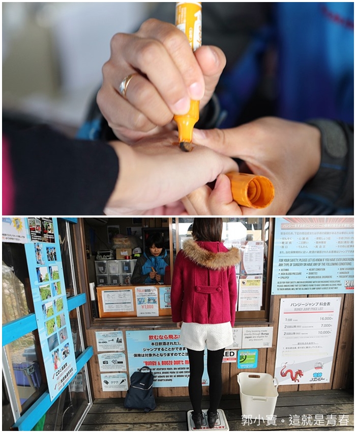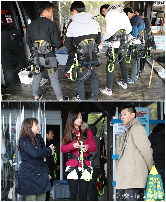 接下來就有教練引導妳及協助妳穿上裝備,再教導妳高空彈跳一些需要注意的事項。 |