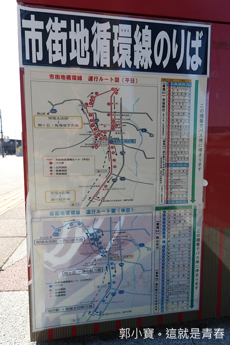 巴士的路線總共有三條路線,假日還有加開班次,如果你在常陸太田呆超過兩天以上的話,那就可能要善用這三條巴士路線,不然我覺得來這邊自駕是最方便的,幾乎很多地方都有免費的停車場以外,路標跟指示也很清楚,個可以體驗一下漫遊的常陸太田。 |