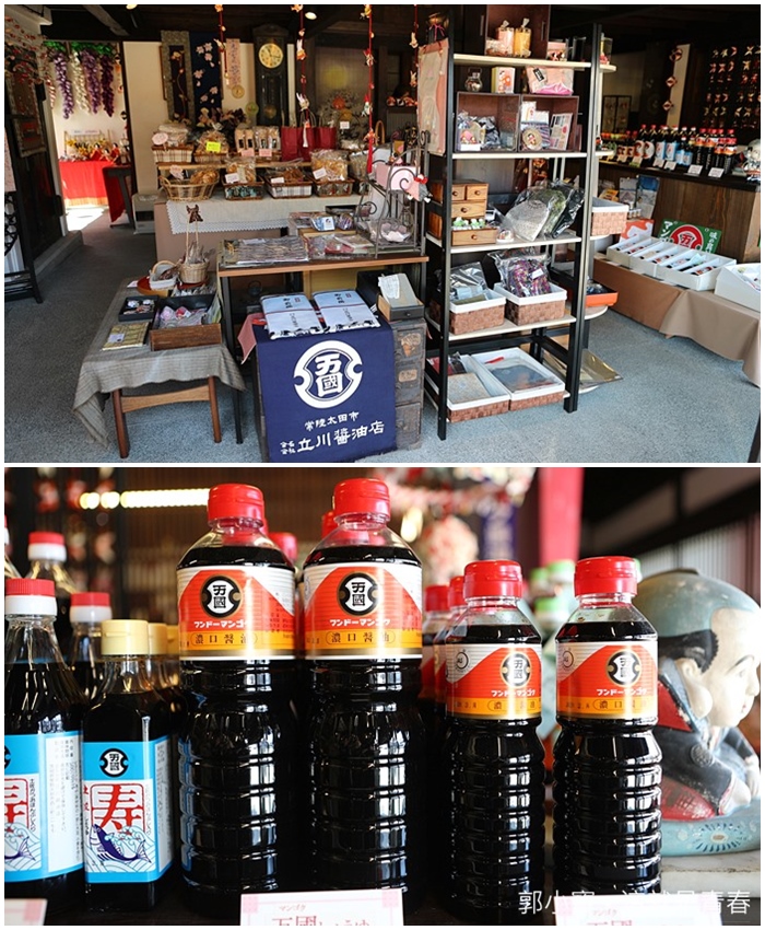 老商店內因為女兒節的關係,配合常陸太田市的規劃,特別延長時間展出各家女兒節的玩偶,家家戶戶跟商店都持續將家裏面的女兒節玩偶陳列出來,看起來真的好漂亮,第一次看到那麼多女兒節的玩偶,立川醬油也是在地上百年的老舖, 也是地方特產之,立川醬油電算是當地數一數二的老店,整個商鋪非常的大,連街後方的大宅,女主人非常熱情,還會帶遊客參觀解說他們家的房子歷史,還有江戶時代浪人跟武士打鬥在防鬧留下的刀痕。
