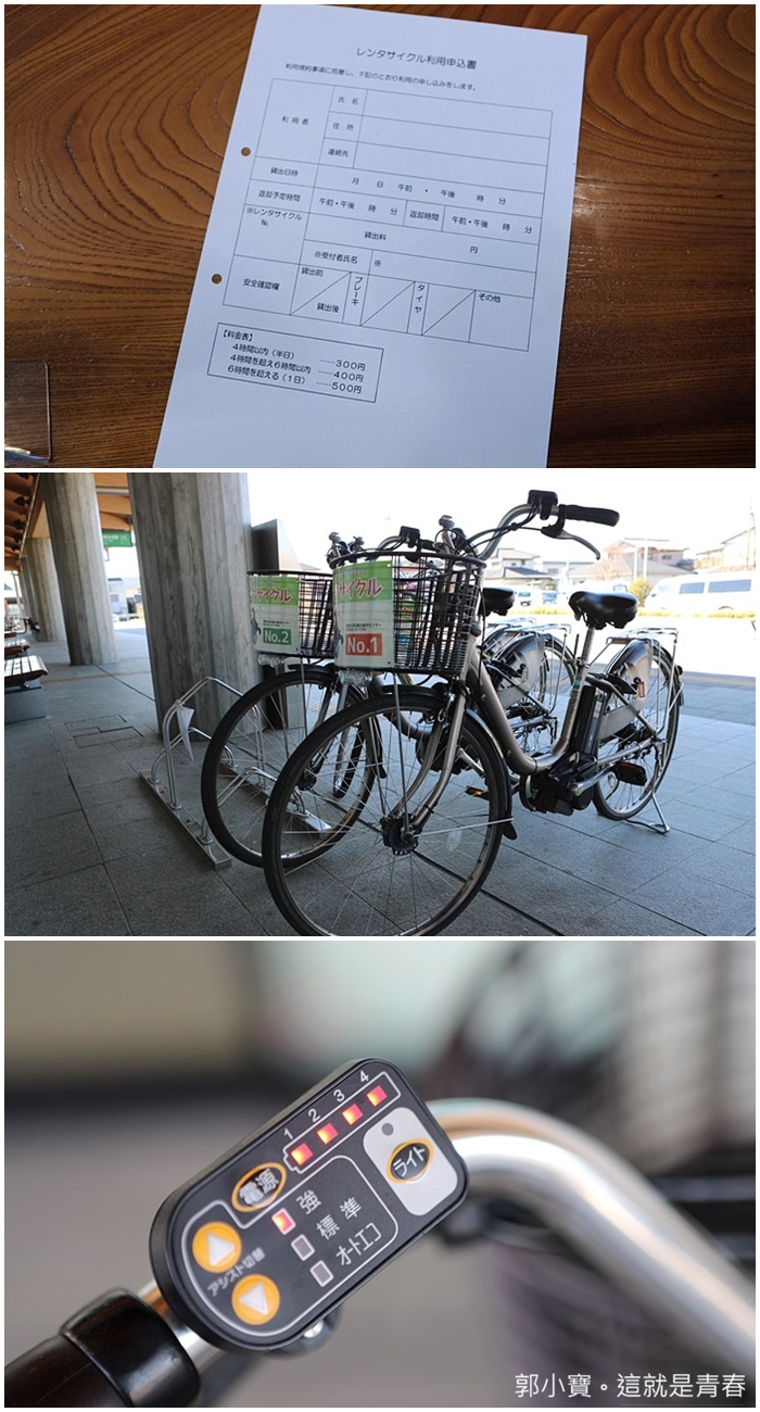 觀光案內所內也有租借電動腳踏車,租金非常的便宜,一路踩上坡幾乎超輕鬆,其實我覺得如果不會開車的自由行朋友也可以租借一整天的腳踏車跑行程,有電動腳踏車真的差超多的。 |