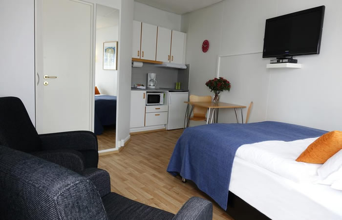 有廚房,微波爐,在昂貴的北歐可以自己做飯吃。