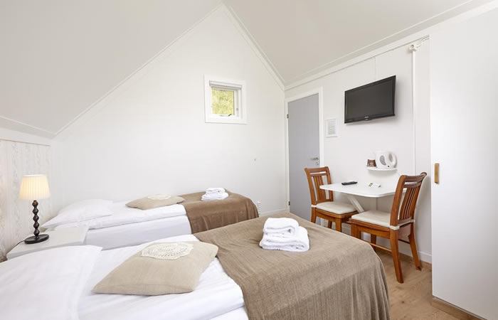 內部裝修像是小木屋的感覺,有三間客房,配了一間洗漱淋浴衛生間,還配有咖啡機、小冰箱,