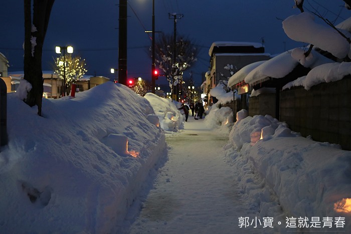 傍晚時分的蛇之崎橋是熱鬧的、沸騰的,隨著30分鐘內的天色變換,那一盞盞的小雪屋逐漸亮了起來,似乎點亮了每個人心理面的溫暖。 |