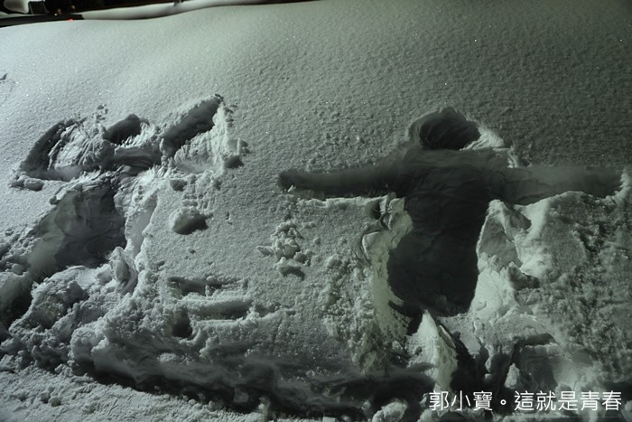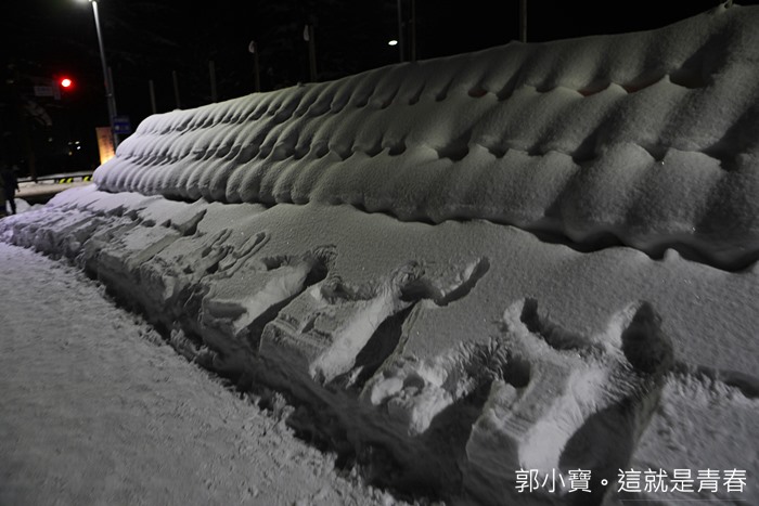 一旁路邊的積雪也是年輕人留下足跡的創舉,一整排的人形真的很可愛。 |