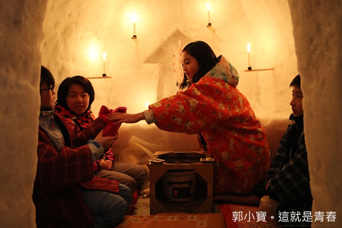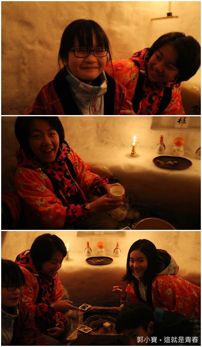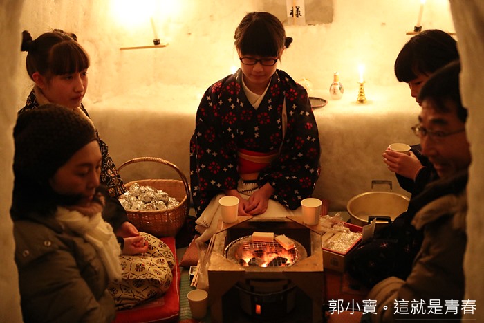 沒有錯,每間雪屋都有橫手南小學的學生服務大家,讓遊客們真正體驗的橫手雪屋的文化,穿著傳統的禦寒服飾烤著年糕,還有分配熱食跟甜酒,體驗這雪屋不用任何費用,每個雪屋外面也都有老師在幫忙傳遞年糕及補充的物品。 |