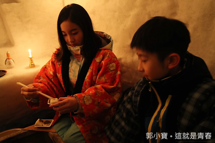 在這樣的天氣裡面吃著熱熱的烤年糕真的太幸福了,每個年糕都是小朋友親手烤完後裝盤在遞給客人,另一個小朋友還會溫熱甜酒給遊客們,在這雪屋裡面感受到不只是烤爐的溫暖,還有情感的溫暖。 |