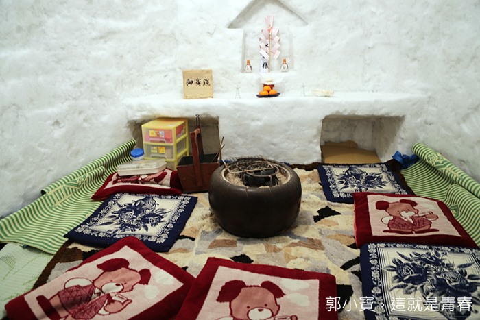 像這類型的雪屋就是市政府搭建起來給觀光客拍照或市體驗的,裡面布置得很溫馨,呈現出橫手雪屋的基本配置,當然你也可以不只拍照,可以在裡面好好的體驗片刻,有些市政府提供的雪屋是不限時間的。 |