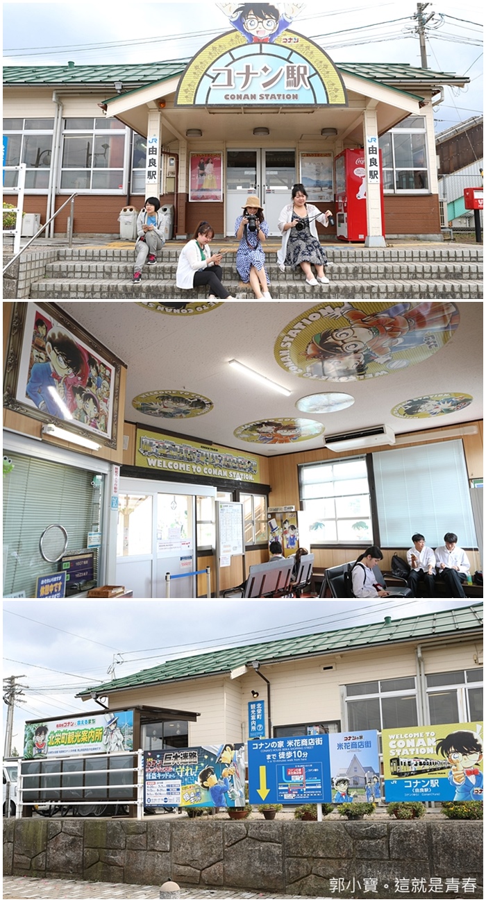 距離柯南博物館最近的車站是由良站,也被動漫迷稱為柯南站,小小的車站一出來就可以看到處處都是柯南的身影,這小鎮因為柯南而熱鬧了起來,從車站內外就可以看到滿滿的柯南造景,一出車站就很有感覺。 |