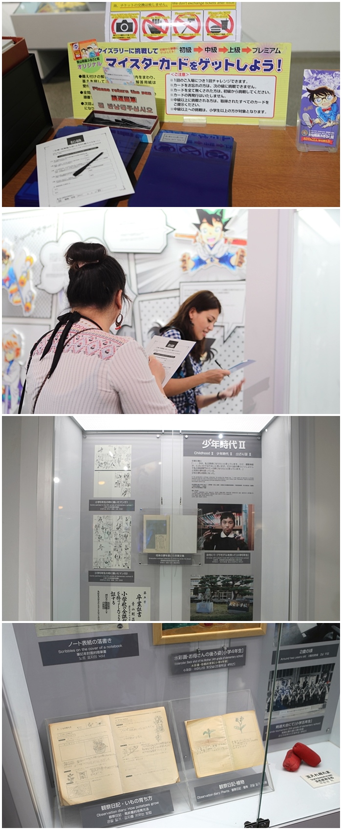 入口處還可以做個測試,看你對柯南了解多少,另外當然少不了就是青山剛昌小時候的照片跟很多手稿,這才是最珍貴的啊!!!! |