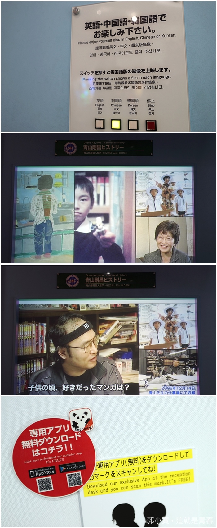 超多青山剛昌的照片跟影音的紀錄,這邊會有國語發音的介紹,也可以掃APP即使導覽。 |