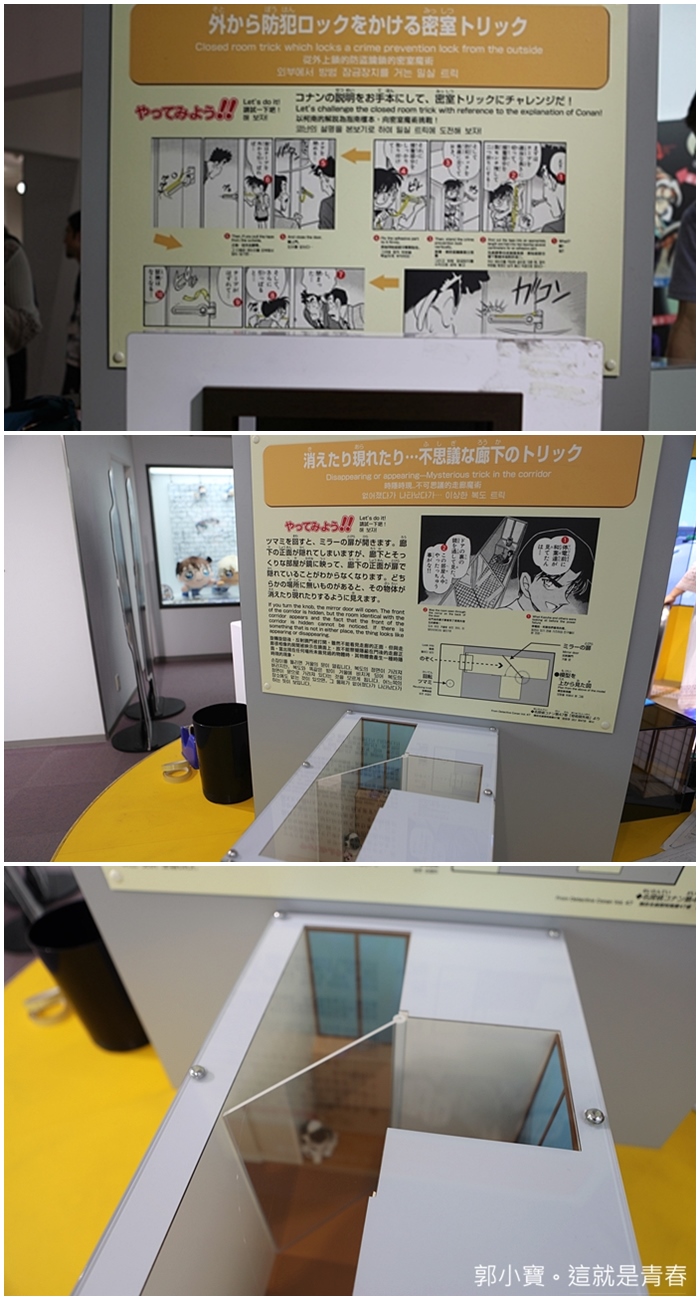 各種密室的解謎現場看更逼真也更能理解,都會配有圖文解說,雖然是以日文字為主,但是台灣人看幾個漢字跟圖應該就能猜出個大概。 |