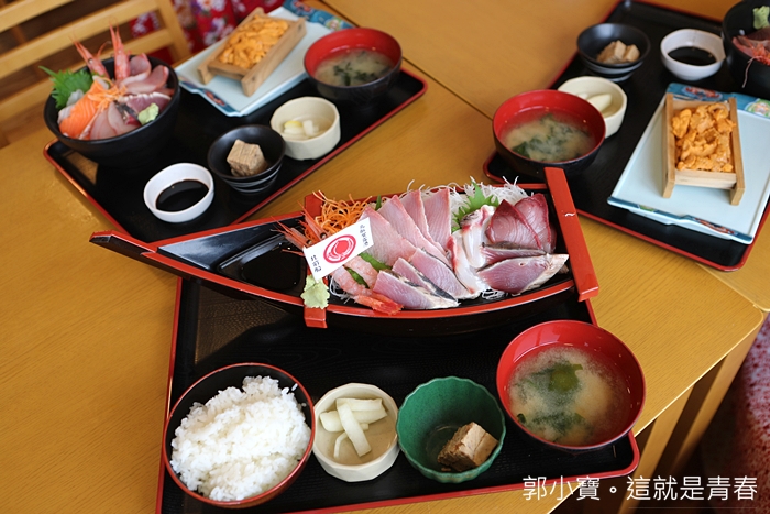 老實說這一套定食真的很狂,這樣一整套只賣980日幣真的太誇張了,我日本也算是跑得很透也跑過很多地方,第一次看到這麼便宜的,除了滿滿的生魚片以外還有甜蝦、章魚、小菜跟白飯、味噌湯的套餐不到1000日幣! |