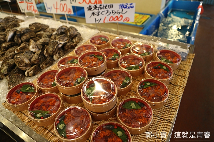 每次來日本的海鮮市場都很驚訝她們可以那麼的乾淨,地上也不會濕濕的走起來很不舒服,而且空氣中也沒有什麼魚腥味,真的非常好逛。